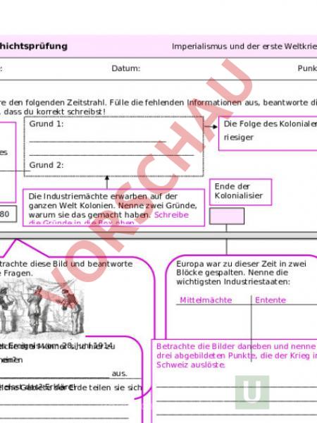 Arbeitsblatt: Prüfung Erste Weltkrieg