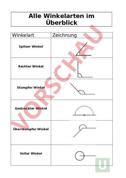 Winkelarten: Spitz, recht, stumpf, gestreckt, überstumpf, voll