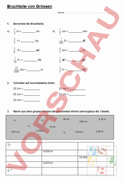 Arbeitsblatt: Bruchteile von Grössen