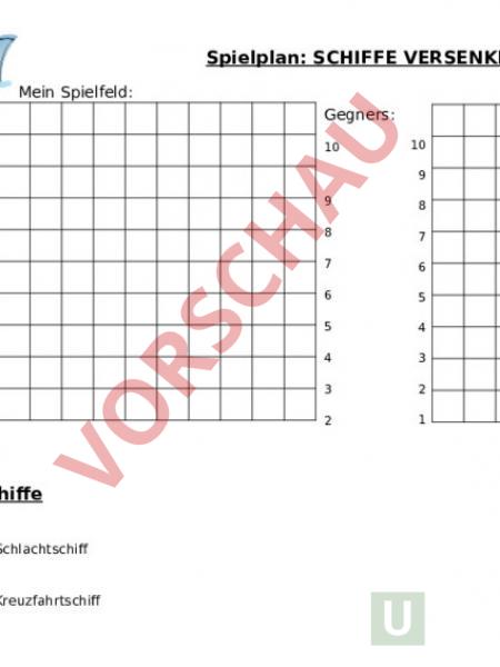 Spielplan: SCHIFFE VERSENKEN Mein Spielfeld: Spielfeld meines Gegners: 10 10 9 1 Schiffe 1x Schlachtschiff 2x Kreuzfahrtschiff 9 8 8 7 7 6 6 5 5 4 4 3 3 2 2 1 2x Fähre 3x U-Boot B X X X X X E F G Schiffe Gegner 1x Schlachtschiff H I X X X 2x Kreuzfahrtschiff 2x Fähre 3x U-Boot X X X X X X X