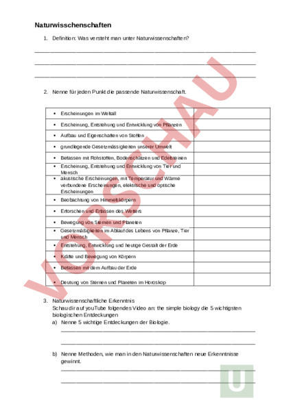 Arbeitsblatt: naturwissenschaften allgemein