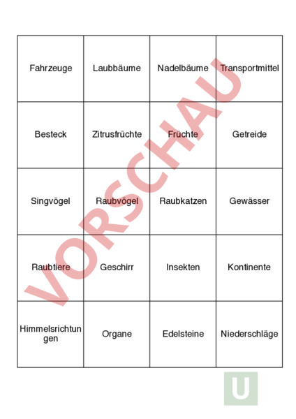 Arbeitsblatt: Oberbegriffe Kärtchen