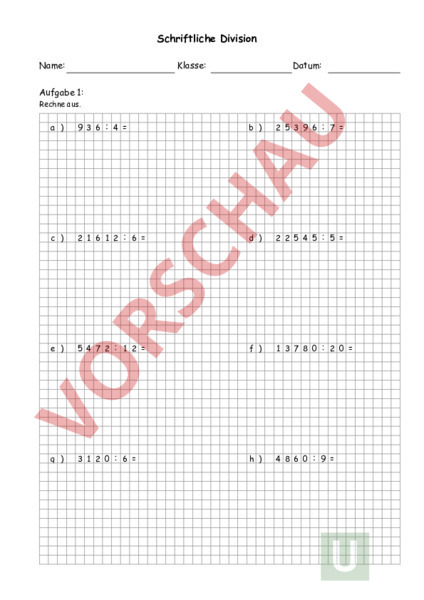 Arbeitsblatt: Schriftliche Division
