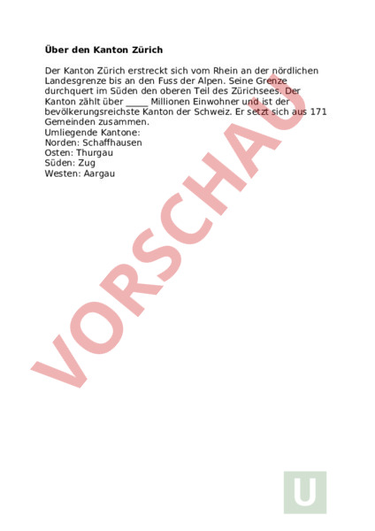 Arbeitsblatt: Über den Kanton Zürich