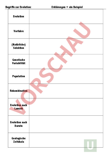 Die SuS müssen selbstständig die Begriffe der Evolution erklären.