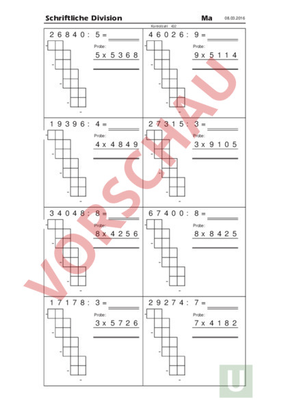 Arbeitsblatt: Schriftliche Division mit einstelligen Divisoren