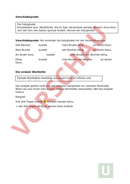 Arbeitsblatt: Verschiebeprobe und verbale Wortkette