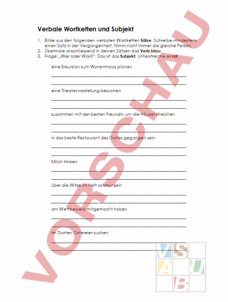 Arbeitsblatt: Verbale Wortketten und Subjekt