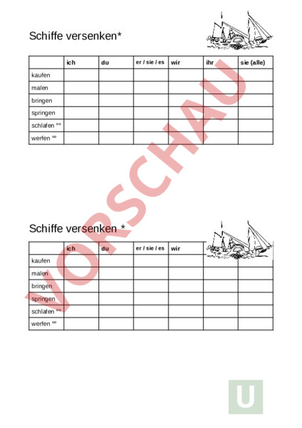 Arbeitsblatt: Verbentraining Schiffe versenken