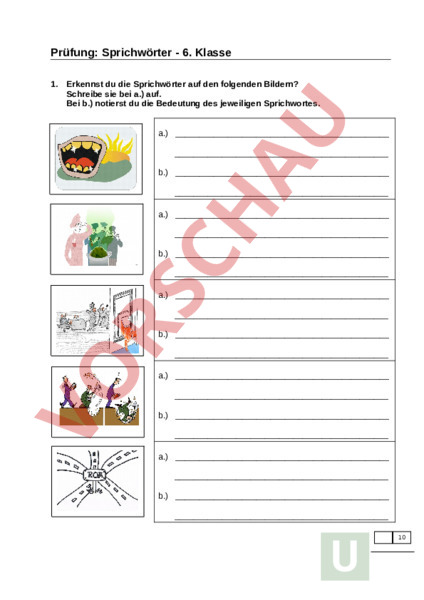 Prüfung zu Thema "Sprichwörtern" - Mittelstufe