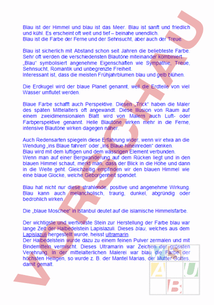 Informationstext zu diversen Farben ( blau)