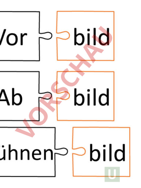 SuS-Gruppen erhalten je die Puzzleteile zu einem Wortstamm. Müssen die Wörter finden und dann Begriffe wie Wortstamm sowie Prä- und Suffix einführen/repetieren.