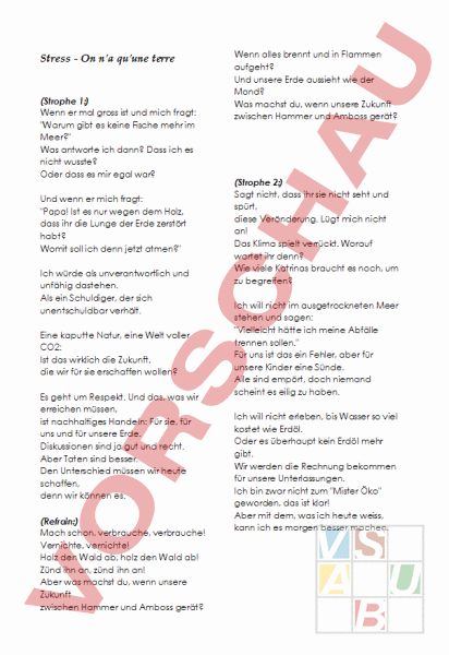 Arbeitsblatt: Songtext Stress: On n'a qu'une terre