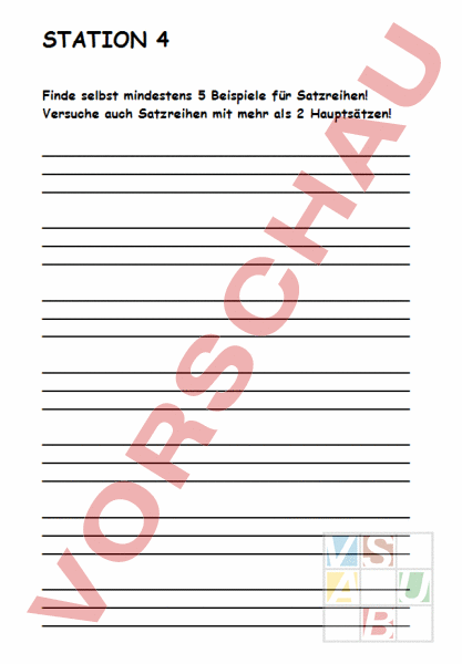 STATION 4 Finde selbst mindestens 5 Beispiele für Satzreihen! Versuche auch Satzreihen mit mehr als 2 Hauptsätzen!