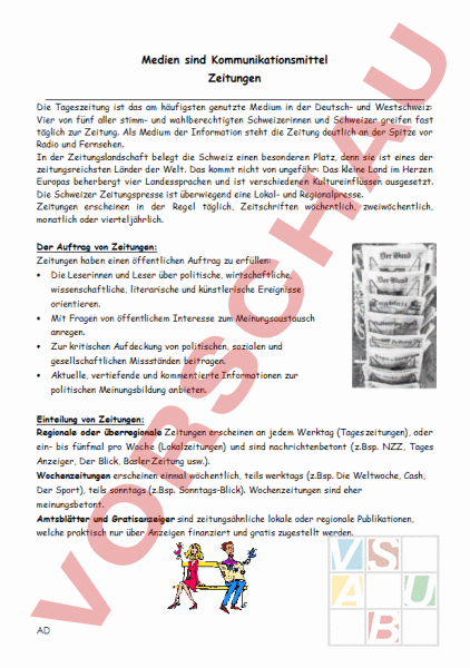 Arbeitsblatt: Medien sind Kommunikationsmittel- Zeitungen