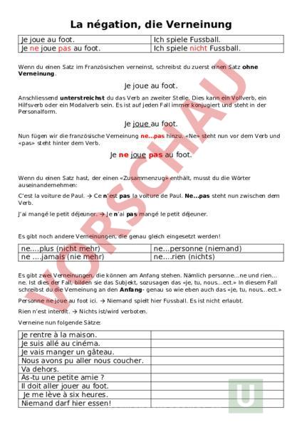 Arbeitsblatt: La négation, die Verneinung