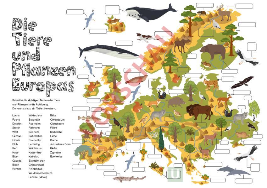 Arbeitsblatt: Tiere + Pflanzen Europas