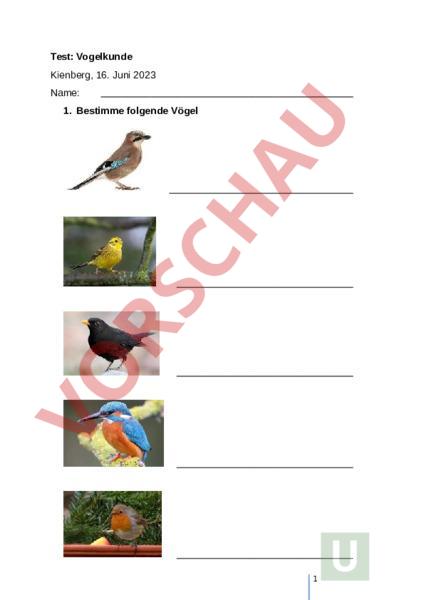 Arbeitsblatt: Test: Vogelkunde