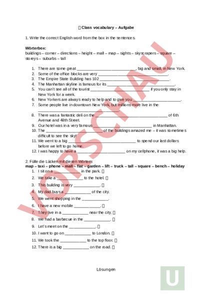 Arbeitsblatt: New York City – Vokabeln in Sätzen