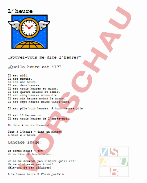 Ein Übersichtsblatt zum Thema Zeit