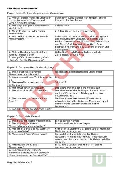 Arbeitsblatt: Der kleine Wassermann Fragen und Begriffe