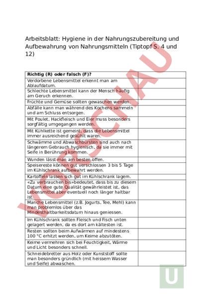 Arbeitsblatt: AB WAH Tiptopf: Hygiene /Aufbewahrung
