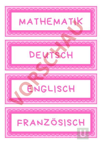 Fächer für die Stundetafel oder den Tagesplan