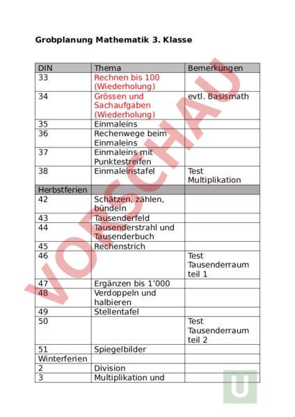 Arbeitsblatt: Jahresplanung Math 3.Klasse