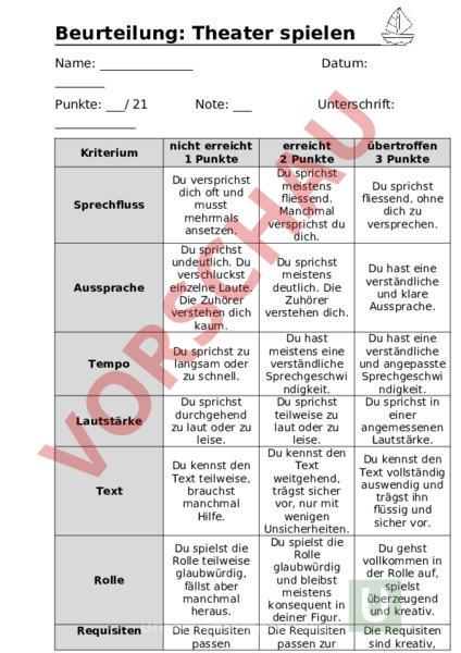 Arbeitsblatt: Beurteilung Theater spielen