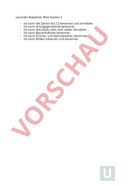 Arbeitsblatt: Lernziele Repetition Mille feuille 3