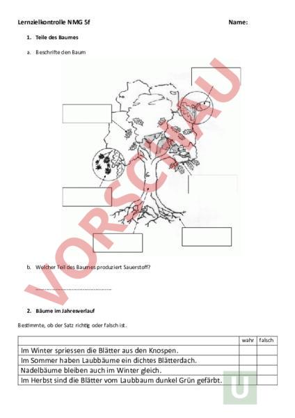Arbeitsblatt: Lernzielkontrolle Thema Wald