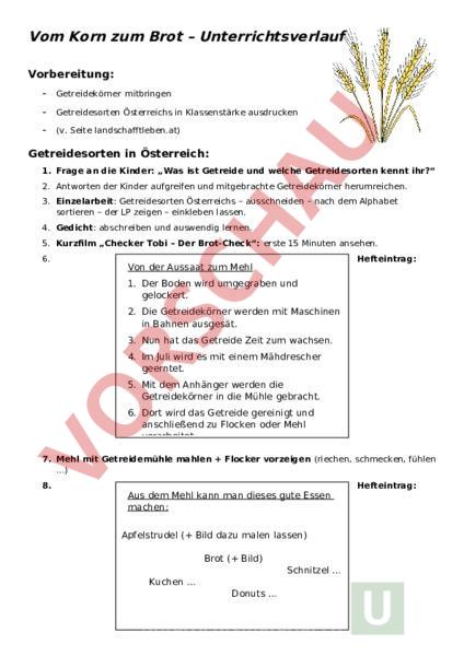 Arbeitsblatt: Unterrichtsverlauf - Vom Korn zum Mehl