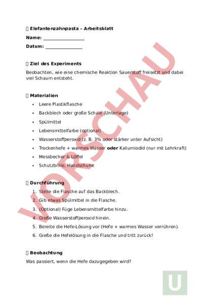 Arbeitsblatt: Elefant Zahnpasta Worksheet