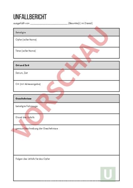 Arbeitsblatt: Unfallbericht schreiben- Material zur Einstiegsstunde