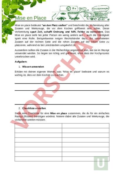 Arbeitsblatt: Mise en Place