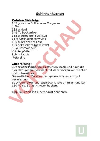 Arbeitsblatt: Schinkenkuchen