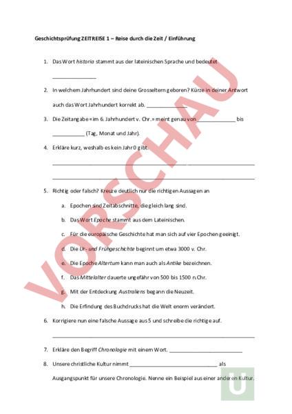 Aus dem Lehrbuch Zeitreise 1 wird in der Prüfung eine Reise durch die Zeit bzw. die Einführung ins Thema abgefragt.