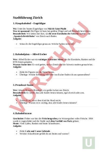 Arbeitsblatt: Stadtführung Zürich