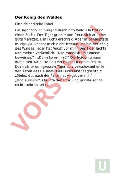 Arbeitsblatt: Fabel Der König des Waldes
