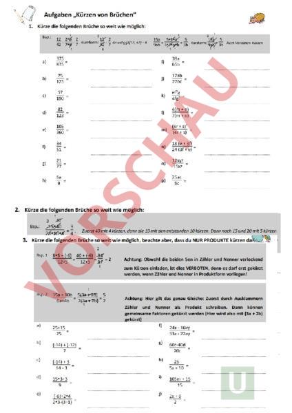 Arbeitsblatt: Addition und Subtraktion von Bruchtermen