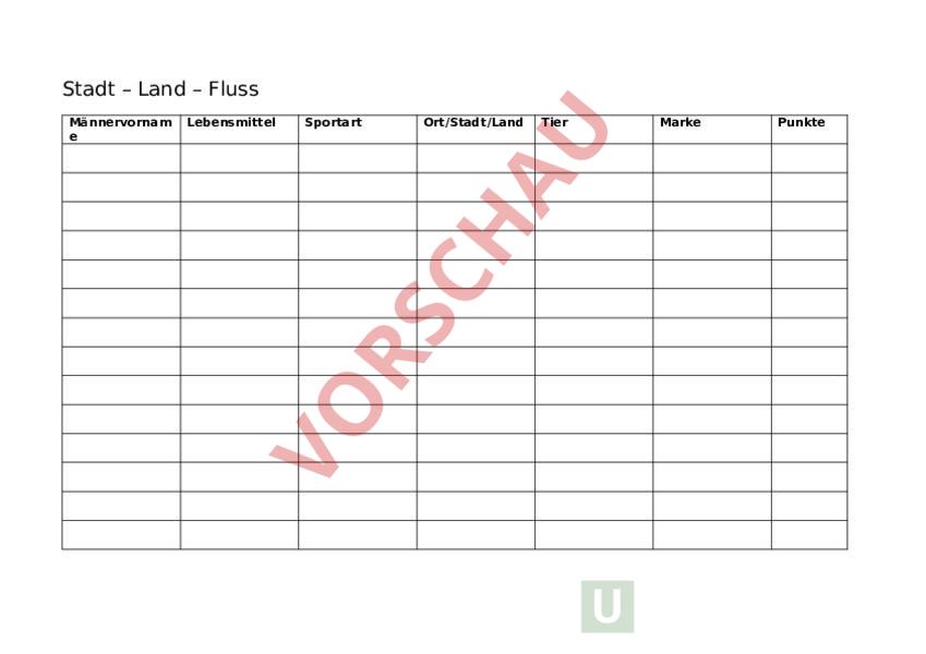 Stadt – Land – Fluss Männervornam Lebensmittel Sportart Ort/Stadt/Land Tier Marke Punkte