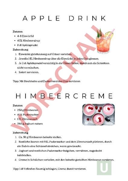 Arbeitsblatt: Rezept Apple Drink und Himbeercreme