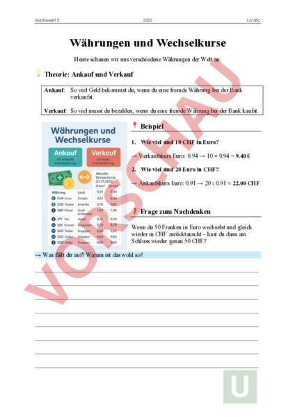 Mathewelt 2 2025 Lo/56c Währungen und Wechselkurse Heute schauen wir uns verschiedene Währungen der Welt an.