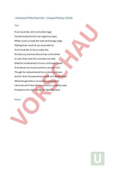 Arbeitsblatt: Poetry Lesson If We Must Die Claude McKay