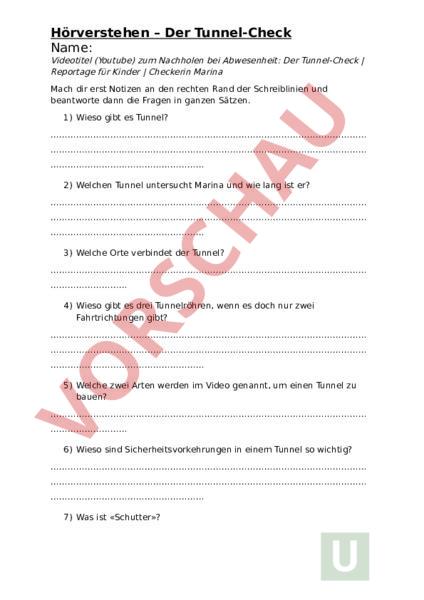 Arbeitsblatt: Hörverstehen Der Tunnel Check