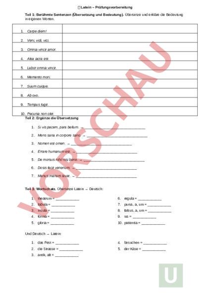 Arbeitsblatt: Latein – Prüfungsvorbereitung