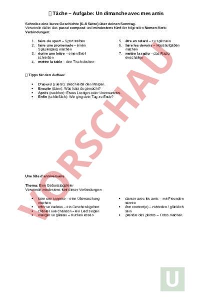 Arbeitsblatt: Tâche – Aufgabe Un dimanche avec mes amis