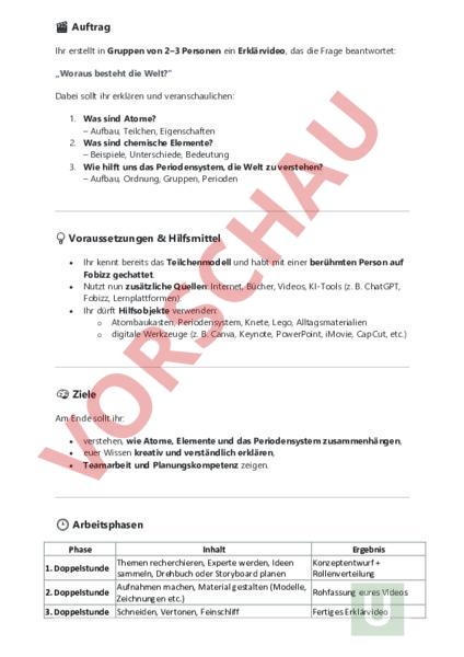 Auftrag: Erklärvideo zum Thema: Elemente, Atome und Periodensystem