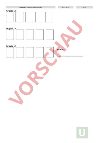 Zusatzblatt – Rechnen mit Kommazahlen SZB S. 36-37 LU 16 Aufgabe 1A Aufgabe 1B Aufgabe 1C Differenz: ----------------------------------------------