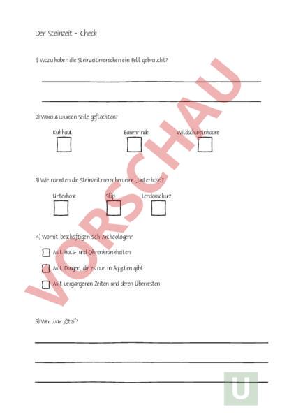 Arbeitsblatt zum Steinzeitcheck von Checker Tobi